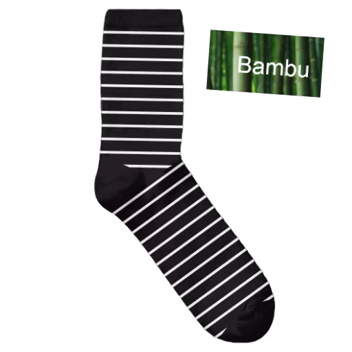 Svart / VitrandigDamstrumpa i mönster av mjuk och skön bambu. Bambunstrumpans naturliga egenskaper gör att strumpan är både antibakteriell och temper