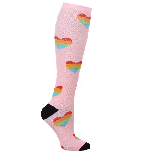 Rosa med Hjärtan – För en energisk dag!Ge dina ben den extra energin de behöver med vår roliga stödstrumpa i rosa med hjärtan. Strumpan har en anatomisk utformn