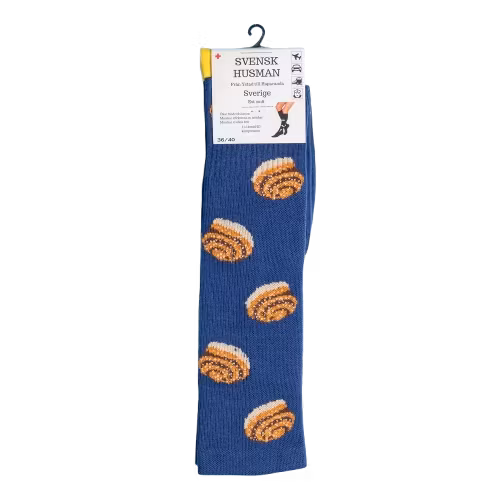 Vare sig du är en globetrotter eller en vardagshjälte, våra stödstrumpor passar alla. De är unisex och finns i flera färger – blå, brun, gul och vit – med ett charmigt kanelbullemönster som ger en lekfull touch.